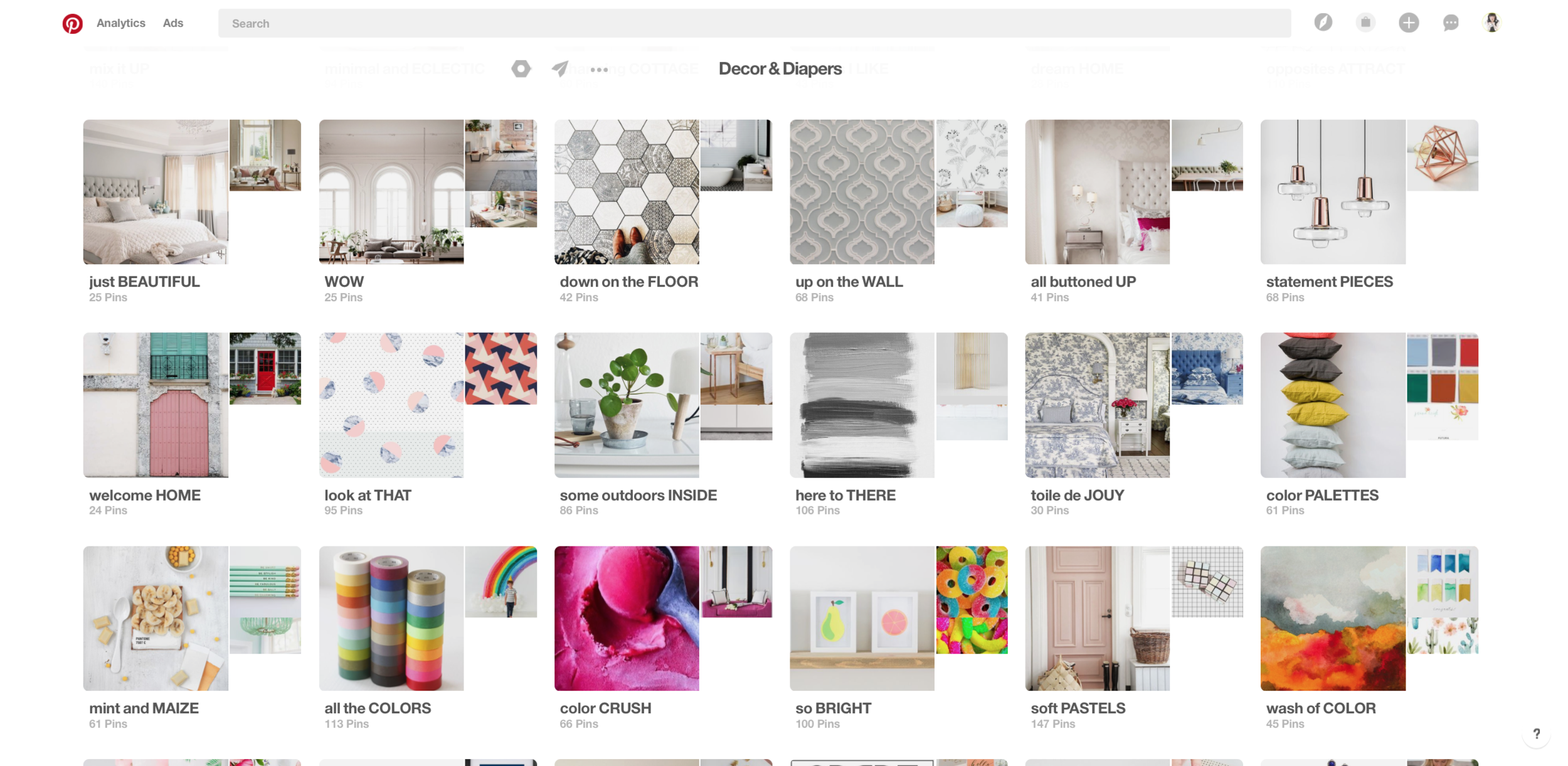 For example, I like to think I know my mom pretty well, so I was not surprised to see she has boards about quotes, gardens, arts and crafts and home decor ideas. My mom and I live in different states, but I can send her pins that I think she would like according to her current boards. I was surprised to see she had recipe boards, so that's something new I learned about her today. Now I can send her ideas from my food board.