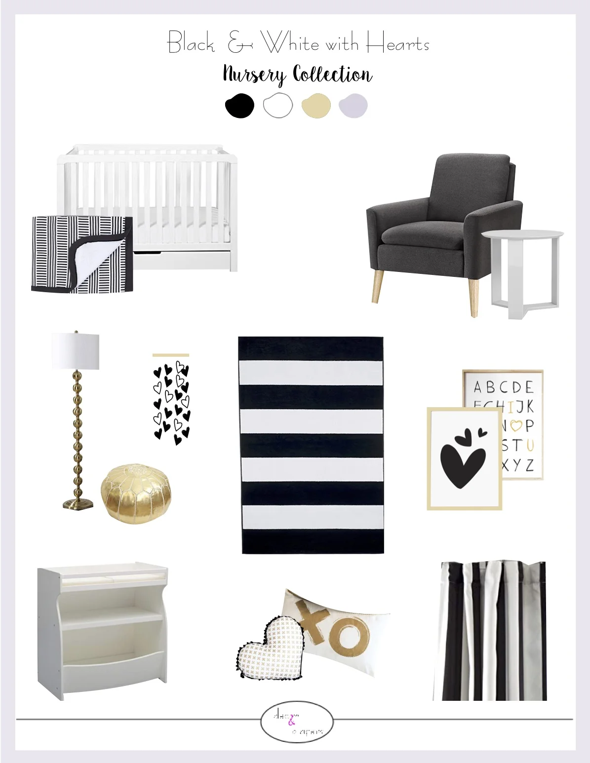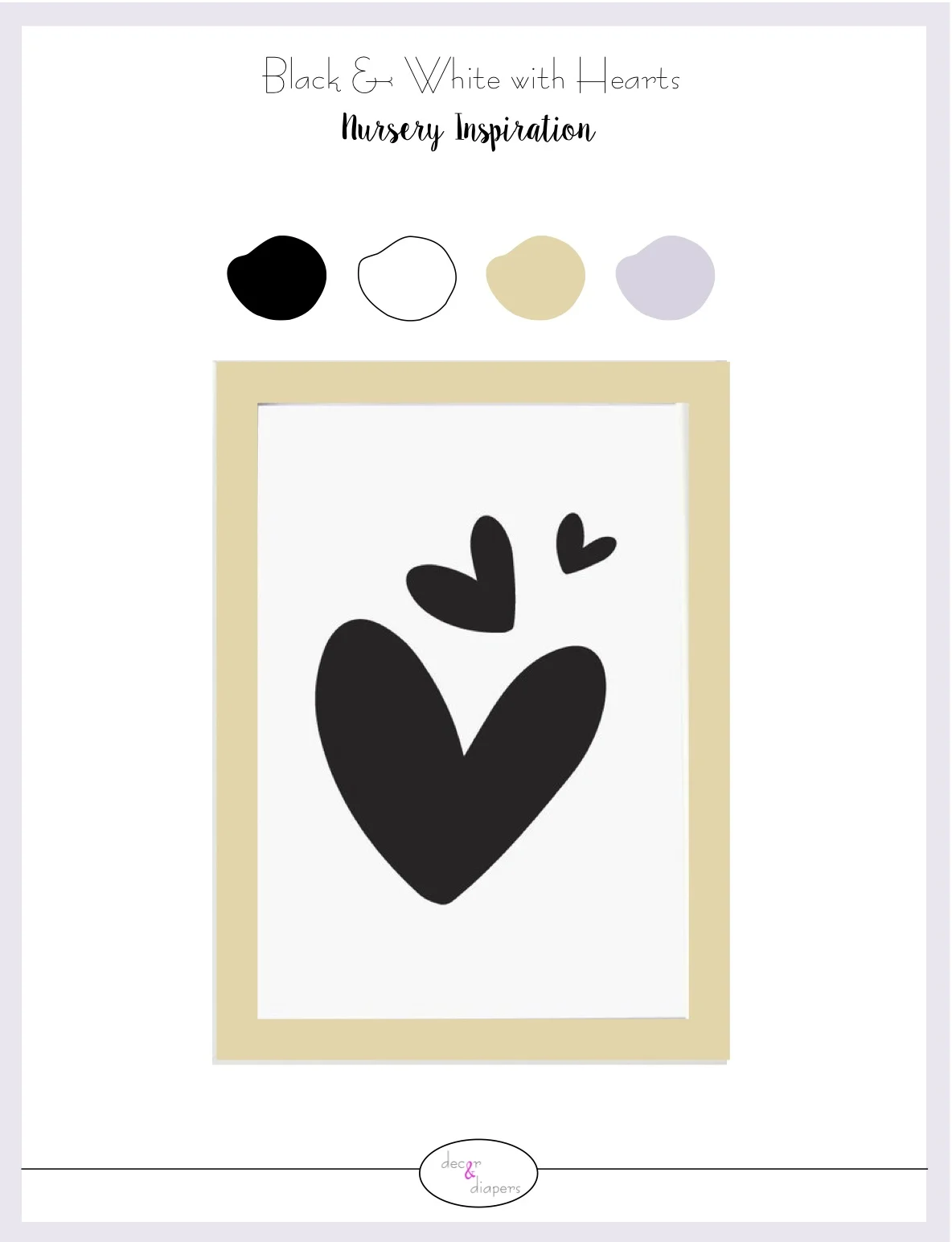 /It’s almost Valentine’s Day, I think we’re all a bit gaga for heart decorations right now. Instagram and Pinterest are a beautiful array of Valentine’s DIYs and delicious recipes. Well, I wanted to channel this lovey time of year in a different way. I thought this would be the perfect challenge to design a black and white nursery inspired by hearts this February. Intrigued to see what I came up with?