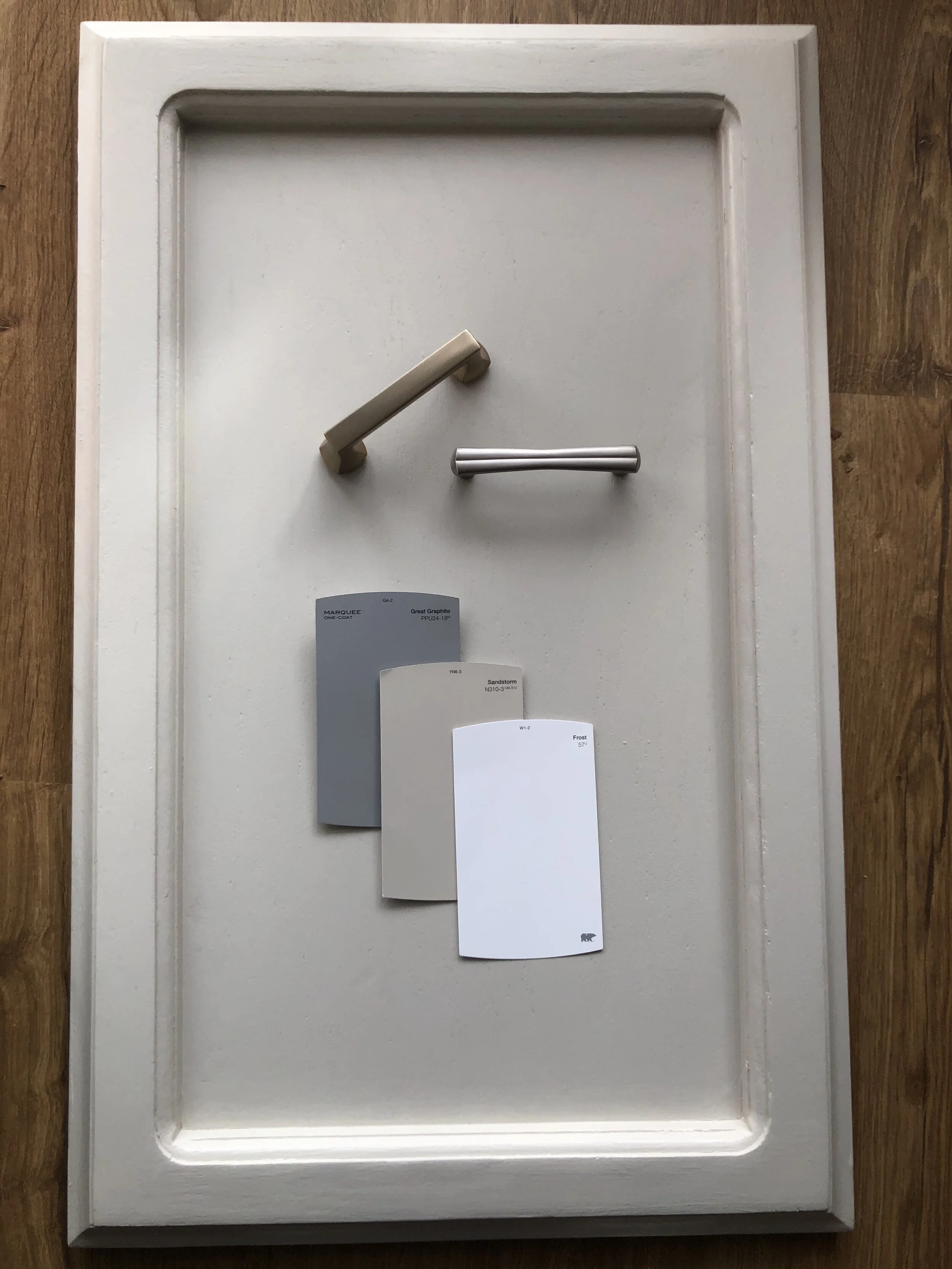 Phase 1 of my kitchen redesign is really all about paint. Have you noticed? Now that there’s only 1 week to go, let’s talk about the jewelry of the kitchen. I took a quick look at hardware on my last trip to the paint store. As much as I love seeing beautiful kitchens on Instagram with brass or gold hardware, I was planning to use a nickel finish. I used that in my boys’ bathroom which I recently completed, and was happy with that. I mixed in brushed brass accents, and that gave me my fix- Haha.